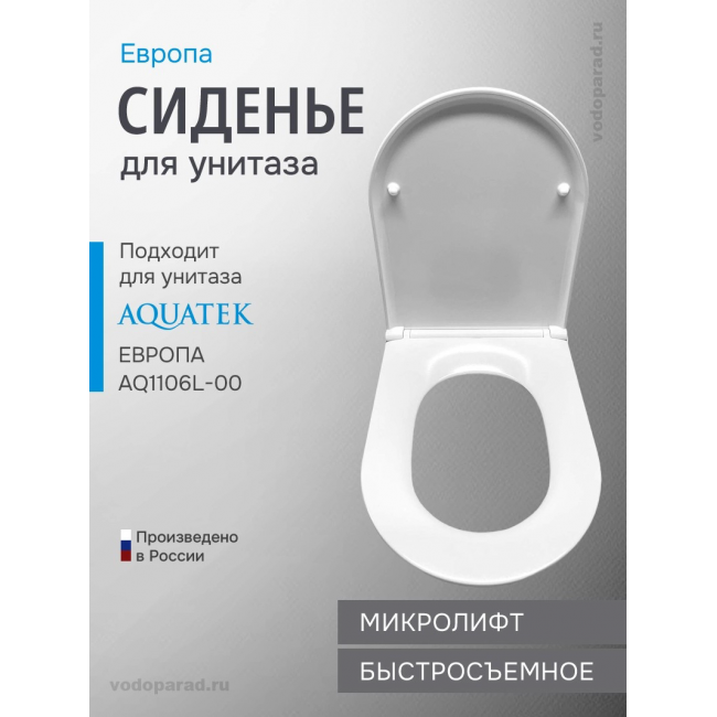 Сиденье для унитаза с крышкой быстросъемное с микролифтом Aquatek Европа AQ0009-00 купить с доставкой. 100% Оригинал. Гарантия!