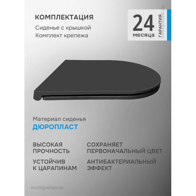 Ультратонкое сиденье из дюропласта не царапается, сохраняет первоначальный цвет на протяжении всего срока службы благодаря повышенной прочности и антибактериальным свойствам материала. Плавное и бесшумное опускание крышки сиденья благодаря микролифту и системе Soft Close обеспечивает комфорт при использовании. Сиденье легко снимается для уборки одним нажатием кнопки и также легко устанавливается обратно.