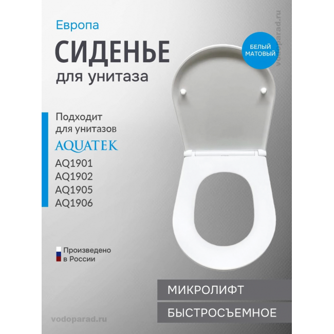 Сиденье для унитаза с крышкой быстросъемное с микролифтом Aquatek Европа AQ0105-MW купить с доставкой. 100% Оригинал. Гарантия!