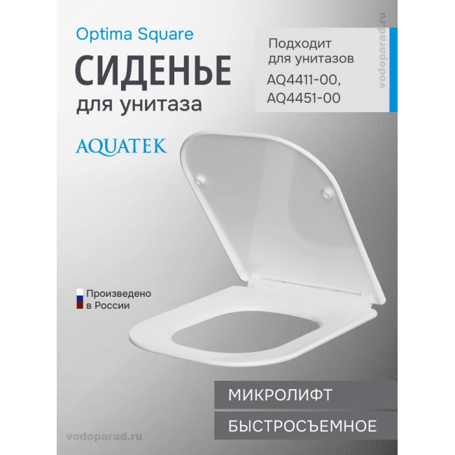 Сиденье для унитаза с крышкой быстросъемное с микролифтом Aquatek Optima Square AQ4001-00 купить с доставкой. 100% Оригинал. Гарантия!