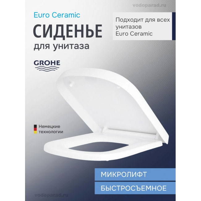 Сиденье для унитаза с крышкой быстросъемное с микролифтом Grohe Euro Ceramic 39330002 купить с доставкой. 100% Оригинал. Гарантия!
