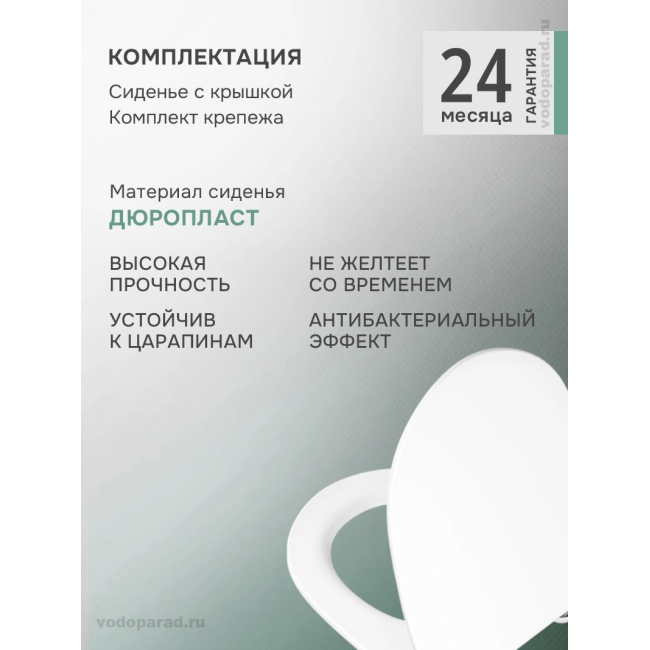 - Сиденья унитазов VitrA сделаны из дюропласта, поверхность которого практически несодержит пор. По заключению института гигиены дюропластовые сиденья VitrA противодействуют размножению бактерий.