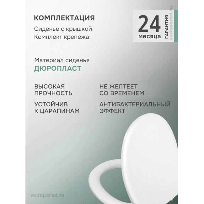 - Сиденья унитазов VitrA сделаны из дюропласта, поверхность которого практически несодержит пор. По заключению института гигиены дюропластовые сиденья VitrA противодействуют размножению бактерий.