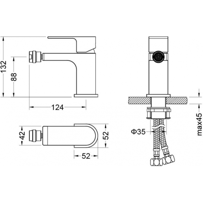 | Комплектация | 1. Смеситель 2. Гибкая подводка 60см 3. Монтажный комплект |