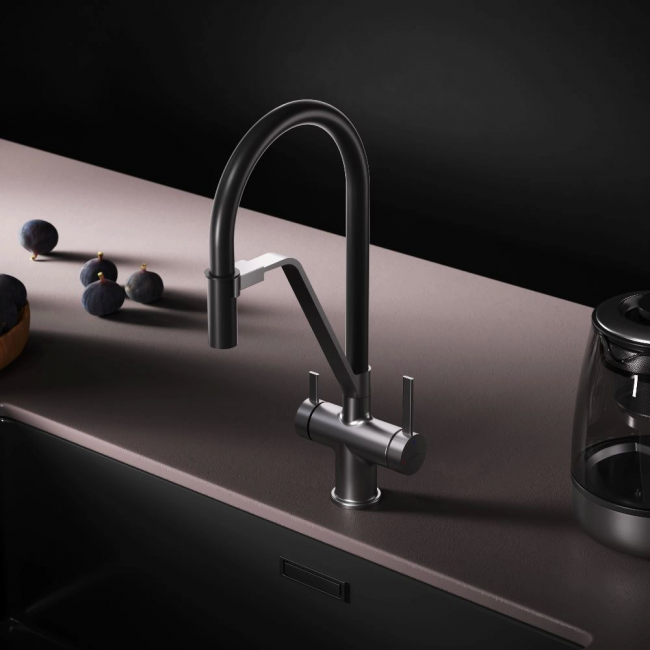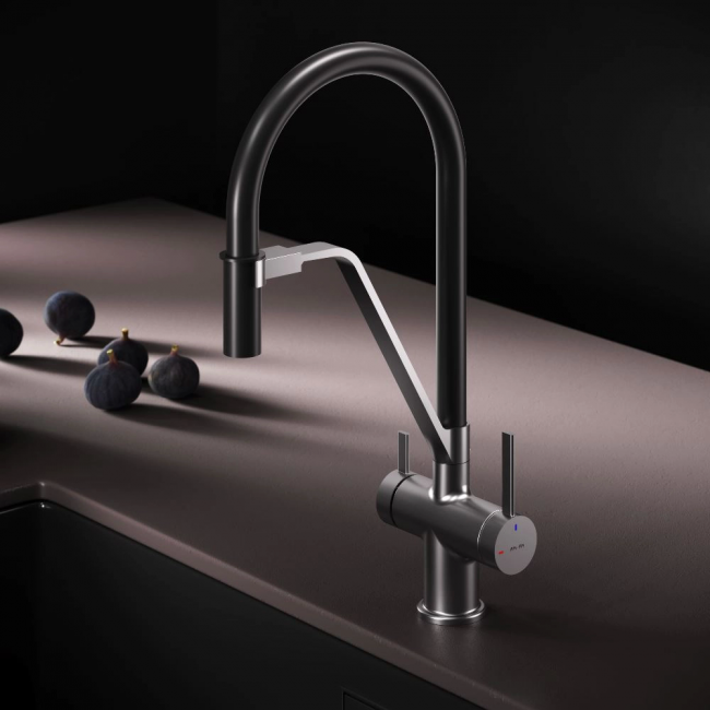 Смеситель для кухни AM.PM Func F8F07812 сатин, черный излив купить с доставкой. 100% Оригинал. Гарантия!