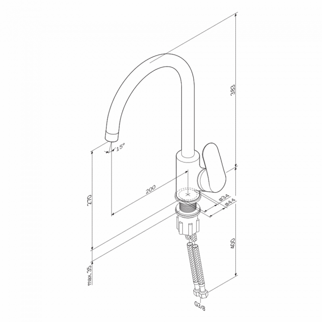 | Высота излива, мм | 270 |