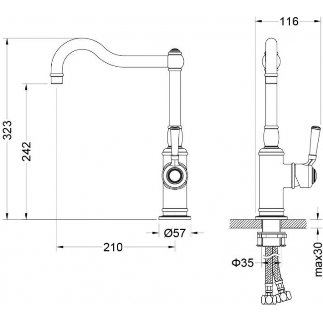 | Комплектация | 1. Смеситель 2. Гибкая подводка 60см 3. Монтажный комплект 4. Слив-перелив и донный клапан в комплект не входят |