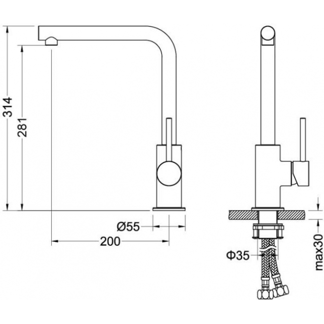 | Комплектация | 1. Смеситель 2. Гибкая подводка 60см 3. Монтажный комплект 4. Слив-перелив и донный клапан в комплект не входят |
