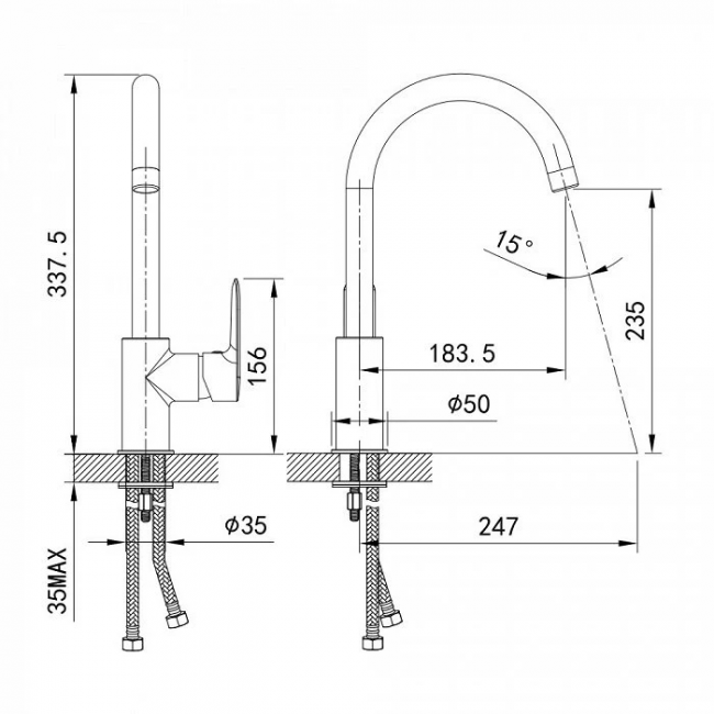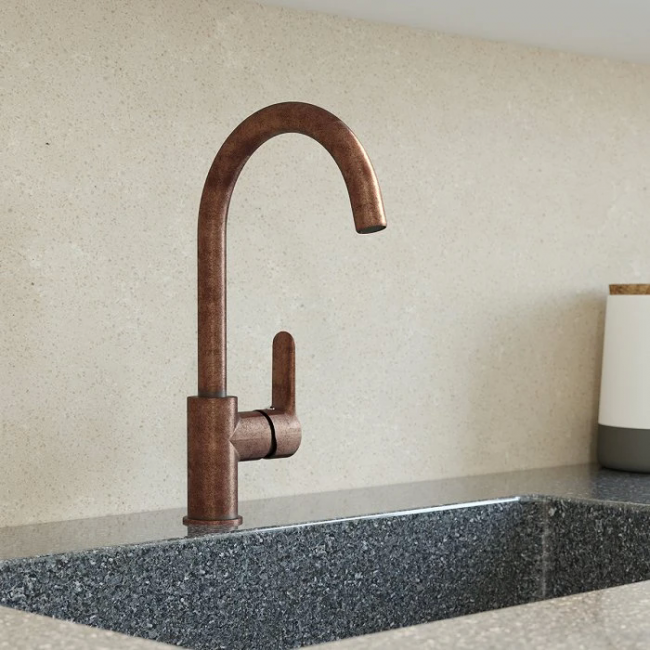 Смеситель для кухни, однозахватный, латунь, цвет покрытия - состаренная медь, керамический картридж Softap 35 мм, силиконовый аэратор Neoperl. В комлекте: гибкая подводка, крепёж. Упаковка: коробка, микрогофрокартон, индивид. мешок.