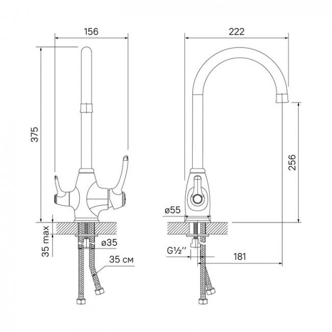 | Длина излива, мм | 181 |