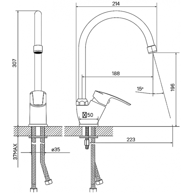 | Стандарт подводки | 1/2" |