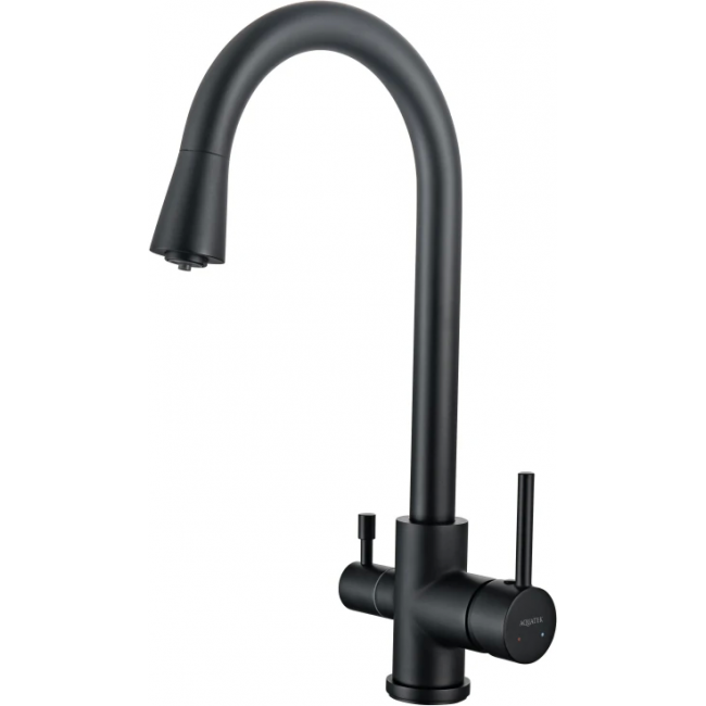 Смеситель для кухни с подключением к фильтру воды AQUATEK (полукруглый излив), матовый черный AQ1085MB купить с доставкой. 100% Оригинал. Гарантия!