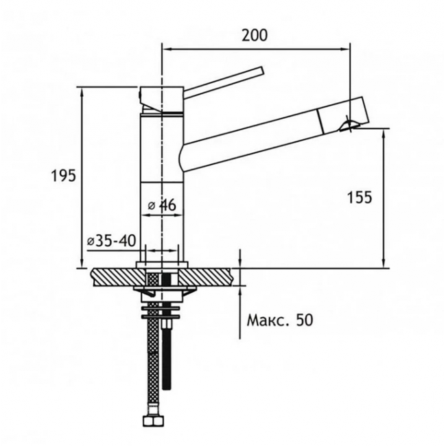 | Длина излива, мм | 200 |
