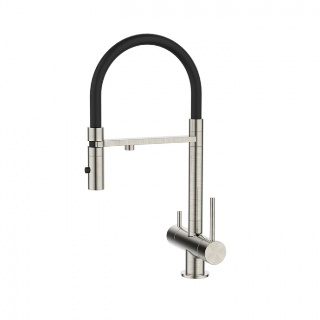 Контрастный черный излив делает смеситель Ace в цвете сатин таким привлекательным. Функциональная модель помогает эффективнее справляться с повседневными задачами на современной кухне. Отдельный канал для фильтрованной воды дает доступ к чистой питьевой воде прямо из-под крана. Гибкий излив позволяет направить струю воды в нужную точку кухонной мойки. При этом руки остаются свободными благодаря держателю для излива на корпусе. Магнитный замок надежно фиксирует излив после использования.