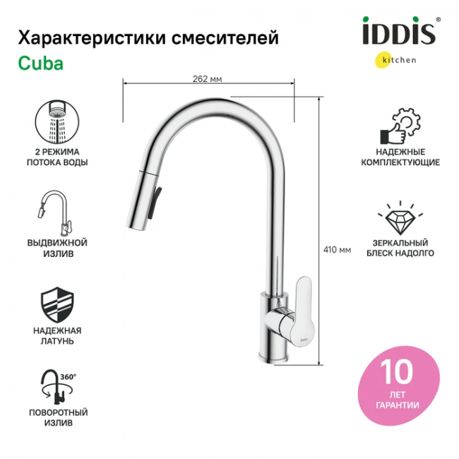 Смеситель для кухонной мойки IDDIS Cuba CUBSBP0i05 с выдвижным изливом хром купить с доставкой. 100% Оригинал. Гарантия!