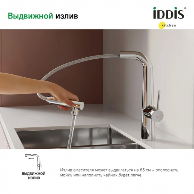 Смеситель для кухонной мойки IDDIS Pure PURSBPFi05 с фильтром и выдвижным изливом хром купить с доставкой. 100% Оригинал. Гарантия!