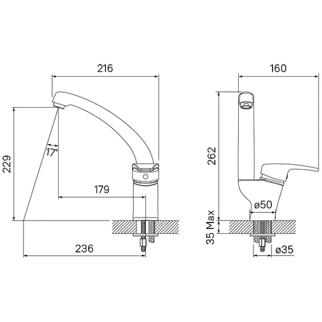 - Гладкая внутренняя поверхность смесителя, рассекатели в водозапорных механизмах и аэратор обеспечивают минимальный уровень шума