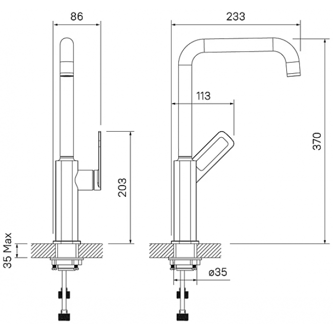| Высота излива, мм | 370 |