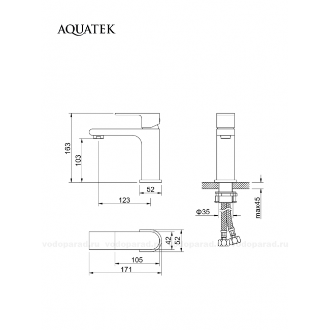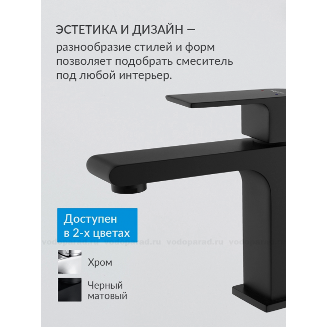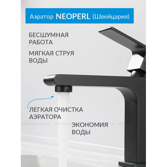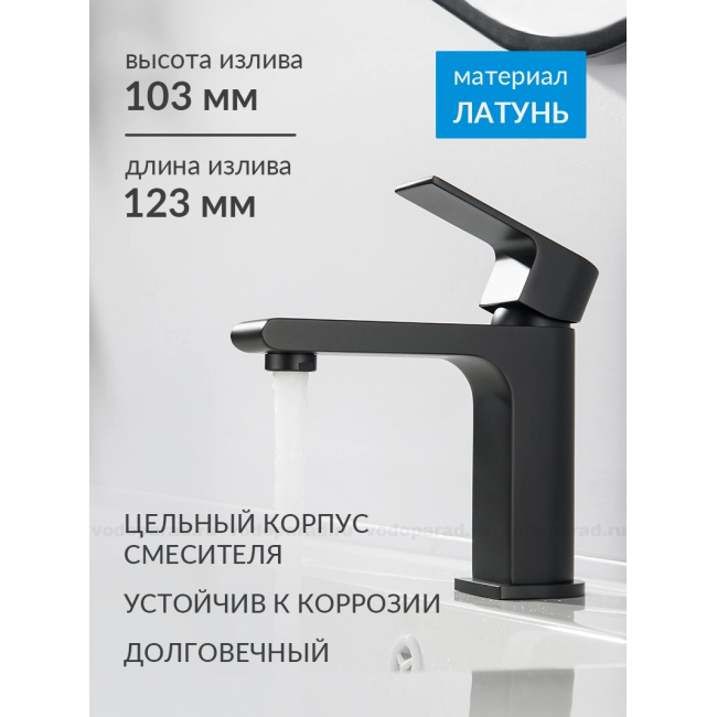 Смеситель для раковины 103, без донного клапана AQUATEK, матовый черный AQ1410MB ЛИРА купить с доставкой. 100% Оригинал. Гарантия!