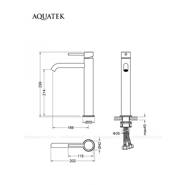 Смеситель для раковины 215, без донного клапана AQUATEK, матовый черный AQ1304MB ЕВРОПА купить с доставкой. 100% Оригинал. Гарантия!