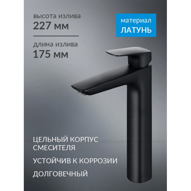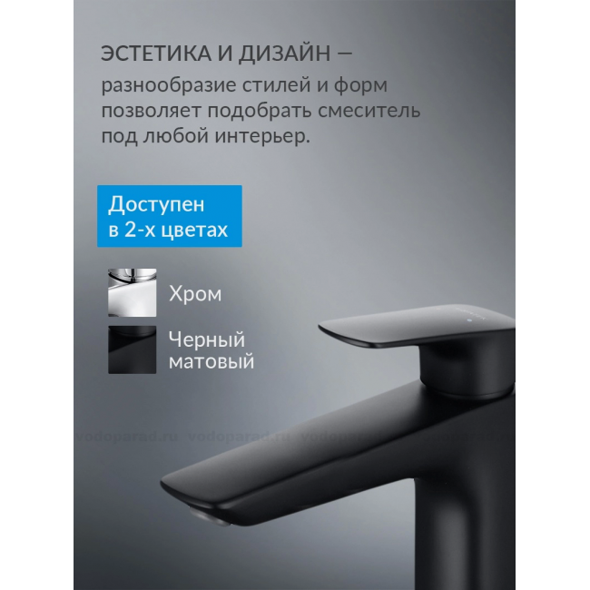 Смеситель для раковины 227 без донного клапана AQUATEK, матовый черный AQ1004MB ВЕГА купить с доставкой. 100% Оригинал. Гарантия!