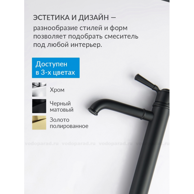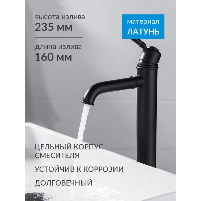 Смеситель для раковины 235, без донного клапана AQUATEK, матовый черный AQ1504MB КЛАССИК купить с доставкой. 100% Оригинал. Гарантия!
