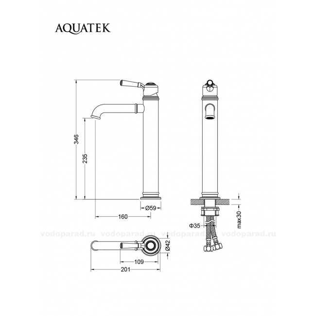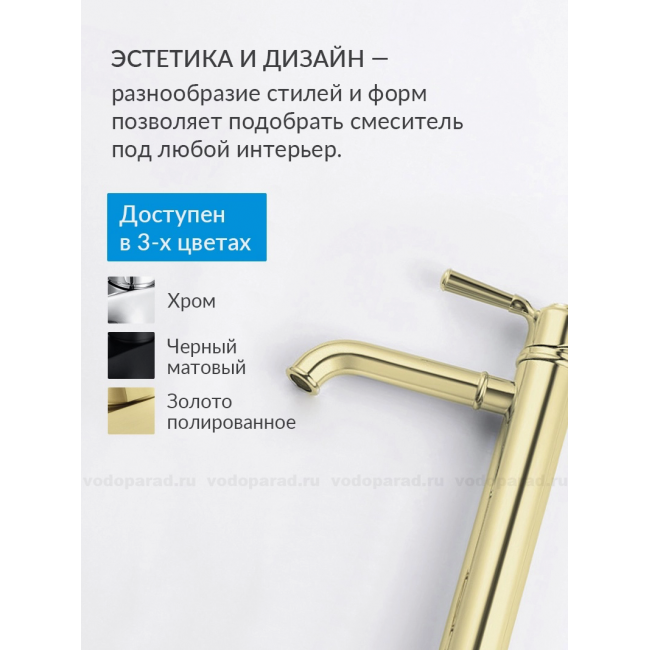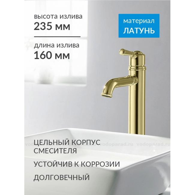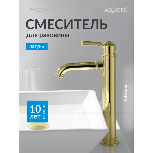 Смеситель для раковины 235, без донного клапана AQUATEK, полир. золото AQ1504PG КЛАССИК купить с доставкой. 100% Оригинал. Гарантия!