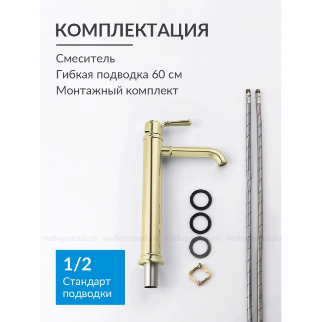 | Комплектация | 1. Смеситель 2. Гибкая подводка 60см 3. Монтажный комплект 4. Слив-перелив и донный клапан в комплект не входят |