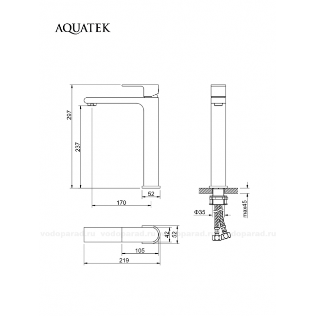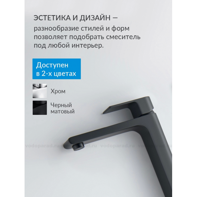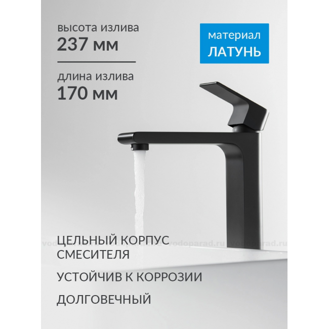 Смеситель для раковины 237, без донного клапана AQUATEK, матовый черный AQ1404MB ЛИРА купить с доставкой. 100% Оригинал. Гарантия!