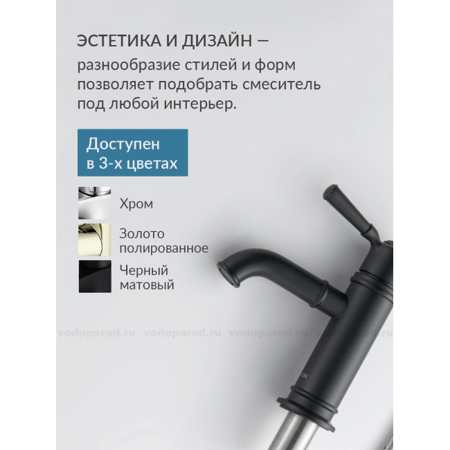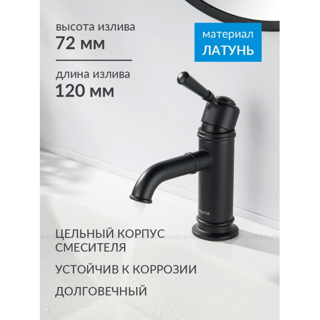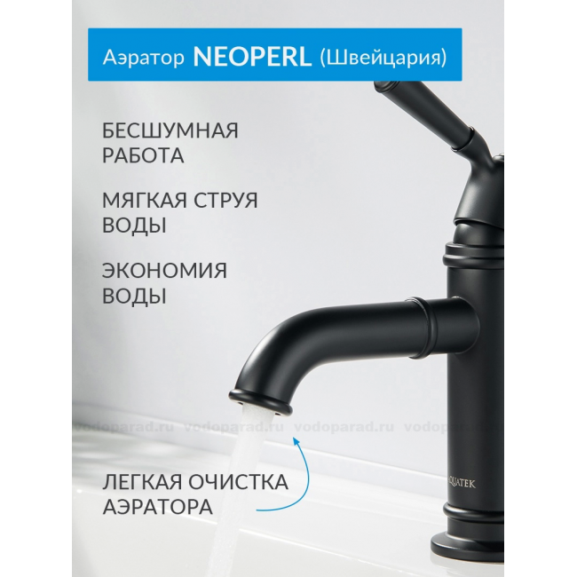 Смеситель для раковины 72, без донного клапана AQUATEK, матовый черный AQ1510MB КЛАССИК купить с доставкой. 100% Оригинал. Гарантия!