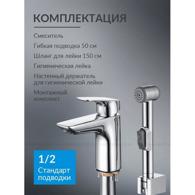 ОПИСАНИЕ- практичное решение для санузла или для ванной комнаты, совмещенной с санузлом, в которых не предусмотрено отдельное подключение для гигиенического душа;- однорычажная система регулировки силы струи и температуры воды;- цельный корпус смесителя снижает вероятность протечек;- шланг из ПВХ; - легкая очистка аэратора;- оптимальная длинна подводки;