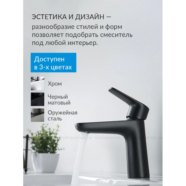 Смеситель для раковины 98, без донного клапана AQUATEK, матовый черный AQ1110MB БЕТТА купить с доставкой. 100% Оригинал. Гарантия!