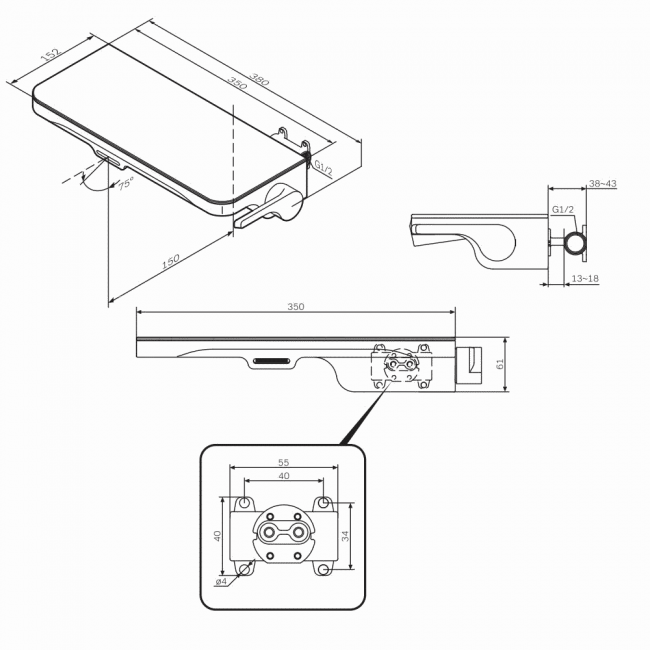 Экстраординарное пополнение самой функциональной коллекции в линейке AM.PM. Впервые в доступном сегменте – встраиваемый смеситель для раковины выполненный в виде полочки с каскадным изливом. Премиальный дизайн смесителя разработан культовым немецким агентством Brandis и был удостоен премии Good Design Awards 2023 – самой престижной мировой премии в области дизайна. Еще больше полезного пространства: смеситель выполнен в виде вместительной полочки. Внушительный размер полки (35 см) позволяет хранить все любимые средства под рукой а эстетичный силуэт станет настоящим украшением современной ванной комнаты. Интуитивно понятное управление: всего одна удобная ручка для настройки температуры и потока воды. Благодаря уникальной технологии EcoStart позволяющей направлять поток исключительно в сторону горячей воды вы не только экономите горячую воду но и заботитесь о своем бюджете.