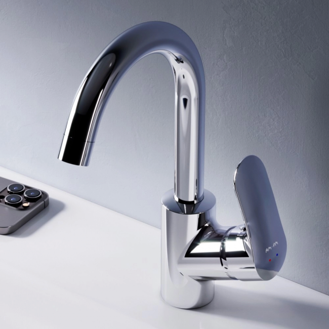 Впервые модный дизайнерский смеситель в доступном сегменте: ультрамодный стиль Dynamic Organic — природные формы в сочетании с четкими линиями доведенными до совершенства человеком. Дизайн в котором учтены все детали: благодаря уникальной форме ручки капли воды скатываются предотвращая образование налета а не высыхают на поверхности. Эксклюзивная разработка: специально спроектированный для АМ.РМ керамический картридж SoftMotion 35 мм обеспечивает оптимальную регулировку температуры а также позволяет выдерживать любые перепады давления. Высокий излив придает смесителю утонченный вид и идеально подойдет для раковины с глубокой чашей а благодаря обширной зоне движения ручки управлять температурой воды еще проще.