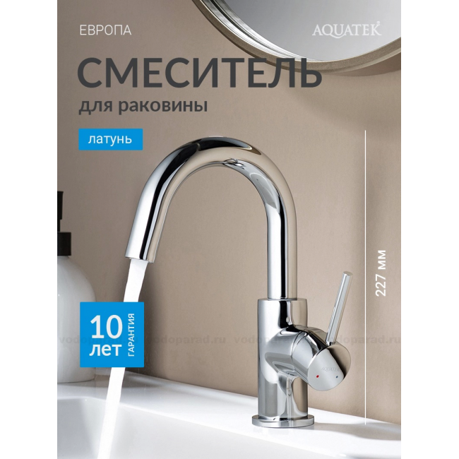Смеситель для раковины, без донного клапана AQUATEK AQ1307CR ЕВРОПА купить с доставкой. 100% Оригинал. Гарантия!