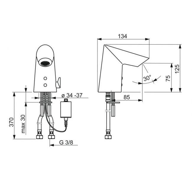 В смесителе ограничено максимальное время подачи воды (антивандальная защита): если поле зрения датчика закрыто непрерывно более 2 минут, то смеситель отключается автоматически, а включается только после удаления помехи с фотоэлемента, например, жевательной резинки, скотча и т.п.