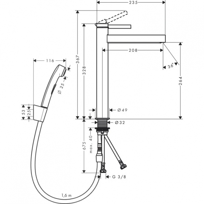 Смеситель для раковины с гигиеническим душем Hansgrohe Finoris 76220670 черный матовый