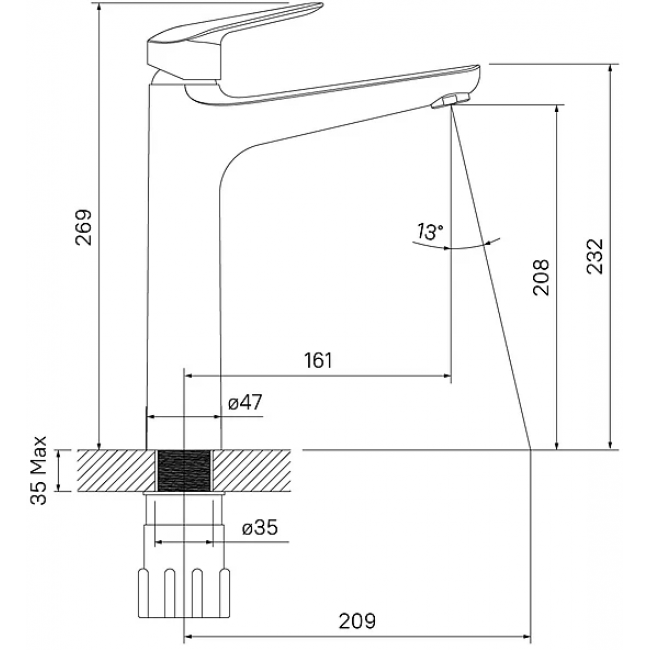 Смеситель для накладного умывальника IDDIS TORR TORSB01i01 выполнен в классическом стиле и используется для подачи и смешивания горячей и холодной воды. Модель устанавливается на столешницу, оснащена эргономичным рычагом, характеризующимся плавной работой и фиксированным изливом. Однозахватный тип управления позволяет очень быстро и плавно регулировать подачу воды одной рукой. Силиконовый аэратор Neoperl® легко очищается от ржавчины и известковых отложений. Изделие выполнено из высококачественной латуни, которая отличается прочностью, долговечностью и устойчивостью к перепадам температур, с устойчивым к износу и эрозии комбинированным покрытием, благодаря которому не теряет презентабельный вид.