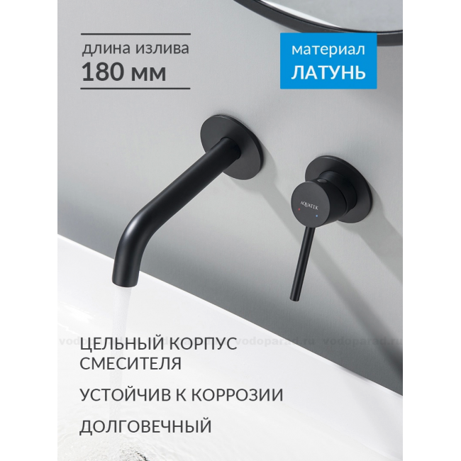 Смеситель для раковины настенный 2 отв. (внешняя и скрытая часть) AQUATEK, матовый черный AQ1313MB ЕВРОПА купить с доставкой. 100% Оригинал. Гарантия!
