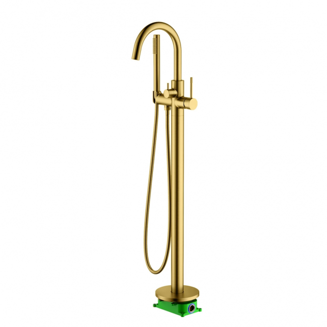 Цвет "шлифованное золото" имеет матовую, гладкую поверхность с легким блеском и более яркий оттенок, чем "матовое золото". Цвет натурального золота добавит роскоши в ванной комнате.Напольный смеситель Timo Saona 2310 предназначен для установки в ванную комнату. Дизайнерская модель одинаково подходит для классического или современного интерьера и станет идеальным сочетанием практичности и комфорта. Основные преимущества: все коммуникации, крепления спрятаны в полу, видны только декоративные элементы. Установить смеситель можно в любом месте. Статичная конструкция не требует ремонта ввиду отсутствия подвижного механизма. Смеситель управляется джойстиком, плавно регулирующим температуру воды и напор. Переключение режимов излив / ручная лейка осуществляется дивертором расположенном на корпусе смесителя. Сложностей монтажа не возникает при установке смесителя опытным сантехником. Внимательно изучите инструкцию по монтажу и эксплуатации.Цвет "шлифованное золото" не оставляет отпечатков пальцев и других загрязнений на поверхности.
