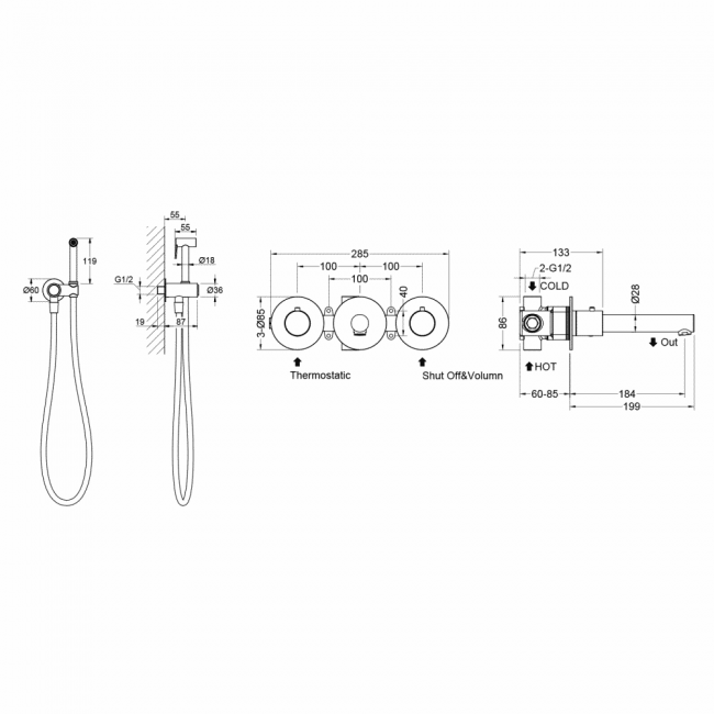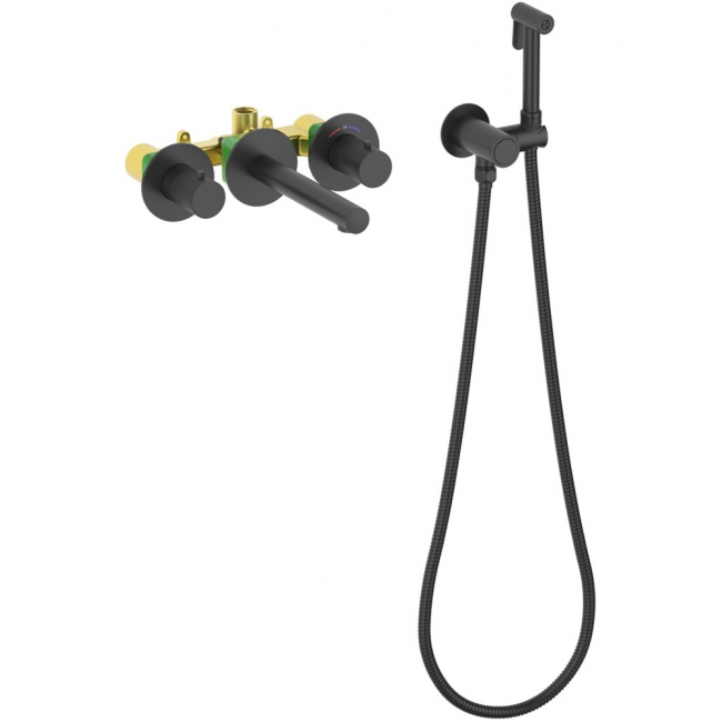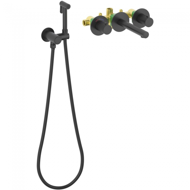 Встраиваемый смеситель с функцией подключения гигиенического душа Timo Saona 2383 предназначен для монтажа в твердой или полой стене. Встроенный блок может быть установлен с левым или правым подключением гигиенического душа. Гигиенический душ можно установить автономно на любом расстоянии от смесителя. Для использования гигиенического душа включать смеситель не требуется. Подача воды на гигиеническую лейку осуществляется нажатием кнопки, расположенной на корпусе держателя лейки. В смесителе установлен термостатический картридж для поддержания стабильной температуры воды в смесителе и гигиеническом душе. Подача воды и увеличение напора в смесителе осуществляется поворотом ручки расположенной справа (при установке душа слева).