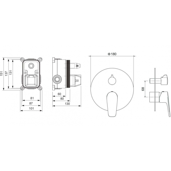 | Комплектация | 1. Смеситель (внешняя и скрытая часть) 2. Декоративная накладка на стену из нержавеющей стали 3 мм 3. Душевой гарнитур приобретается отдельно |