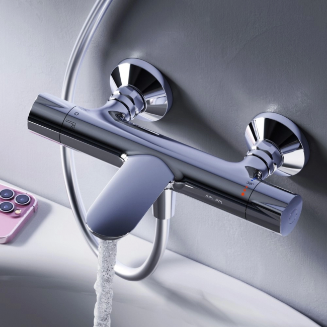 Впервые модный дизайнерский смеситель в доступном сегменте: ультрамодный стиль Dynamic Organic — природные формы в сочетании с четкими линиями доведенными до совершенства человеком. Дизайн в котором учтены все детали: благодаря уникальной форме ручек капли воды скатываются предотвращая образование налета а не высыхают на поверхности. Удобство использования: функция Rub&Clean позволяет с легкостью очищать поверхность аэратора от загрязнений. Передовые технологии: термостатический картридж с высокочувствительным термоэлементом и быстрой реакцией на изменения температуры или давления в водопроводной сети надежно защищает от ожога даже при внезапном отключении холодной воды.