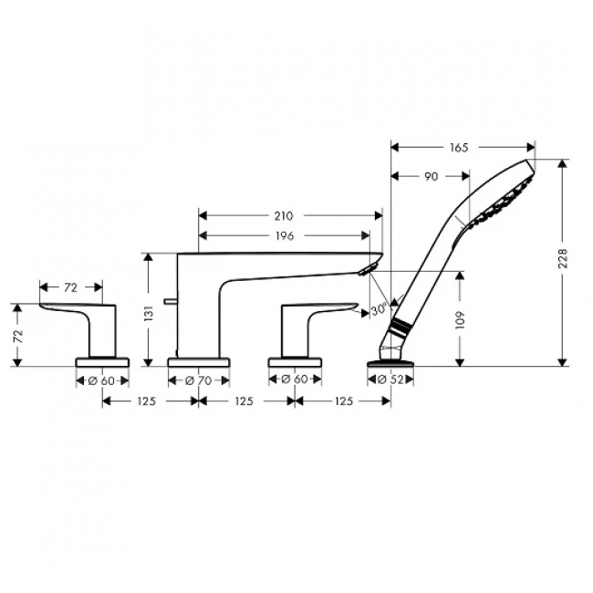 Смеситель для ванны Hansgrohe Talis E на 4 отверстия матовый черный (71748670) купить с доставкой. 100% Оригинал. Гарантия!