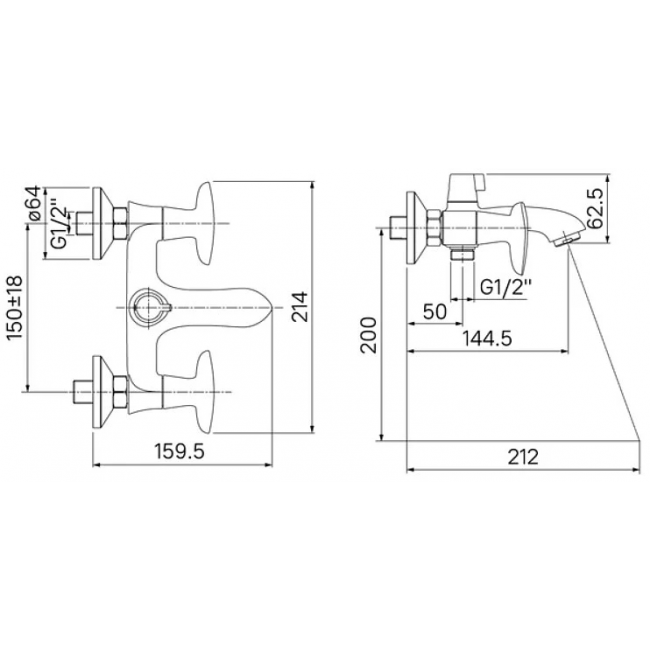 - Межосевое расстояние под крепеж смесителя: 150 мм
