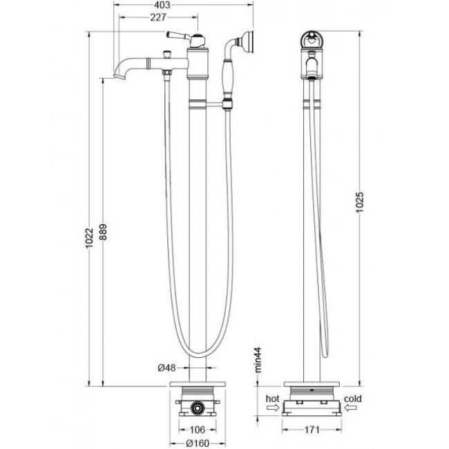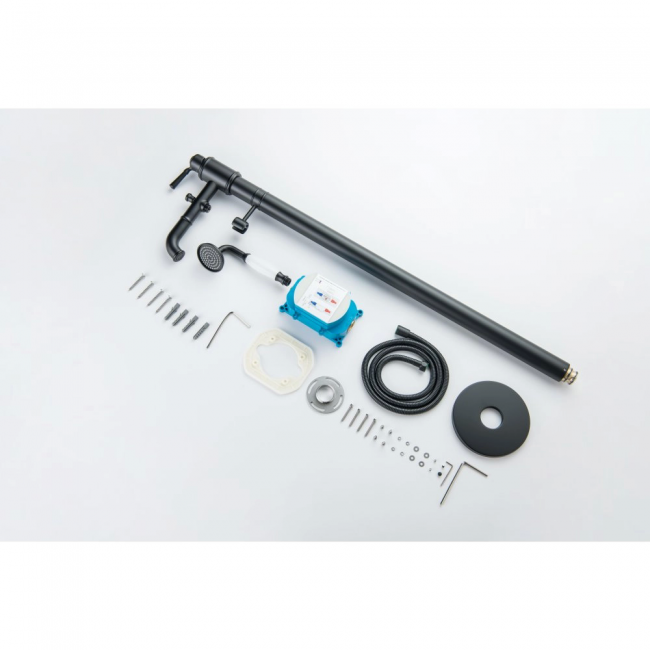 | Комплектация | 1. Смеситель (внешняя и скрытая часть) 2. Ручная лейка 3. Шланг для лейки 150 см 4. Держатель для ручной лейки 5. Дивертор (переключатель потоков) 6. Декоративная накладка на пол |