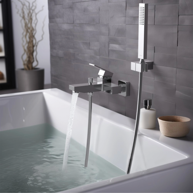 | Комплектация | 1. Смеситель 2. Душевой гарнитур (лейка, шланг, настенный держатель для лейки) 3. S-образные эксцентрики 4. Декоративные отражатели |