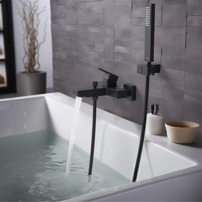 Смеситель для ванны с душевым набором AQUATEK, матовый черный AQ1649MB ЛИБРА купить с доставкой. 100% Оригинал. Гарантия!