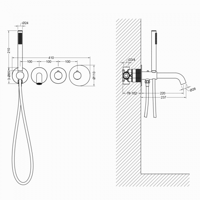 Встраиваемый смеситель с термостатом Timo Saona 2324 предназначен для монтажа в твердой или полой стене. Уникальная дизайнерская модель с раздельными горизонтальными блоками создаст неповторимый современный интерьер в ванной комнате. Основные преимущества встроенного смесителя: коммуникации, крепления и механизмы спрятаны в стену и видны только декоративные элементы, установить встроенный смеситель можно в любом месте. Термостатический картридж поддерживает стабильную температуру воды, обеспечивая максимально комфортные условия для принятия водных процедур. Стильная лейка-карандаш удобна в использовании и фиксируется на держателе с подключением шланга для душа. Регулировка температуры и напора воды осуществляется джойстиком справа. Переключение потока воды с излива на ручную лейку осуществляется поворотом ручки дивертора.