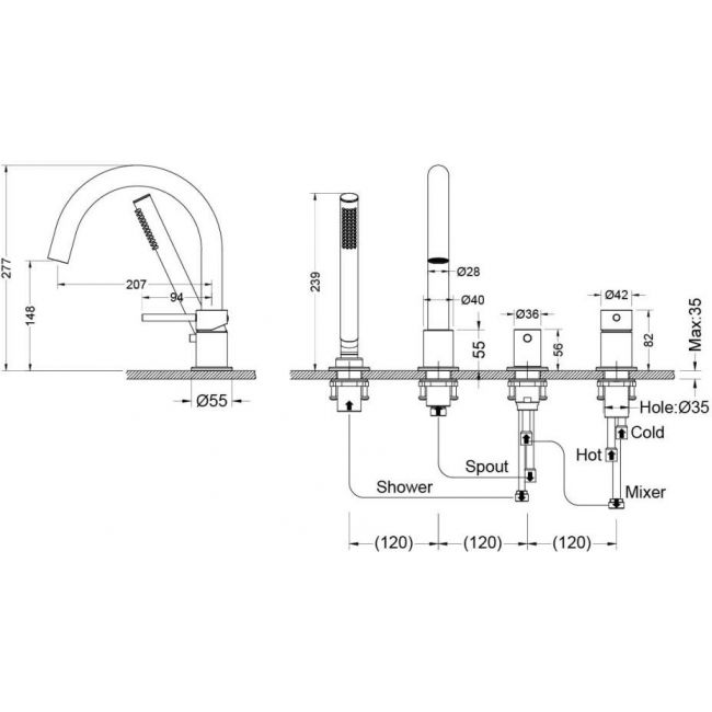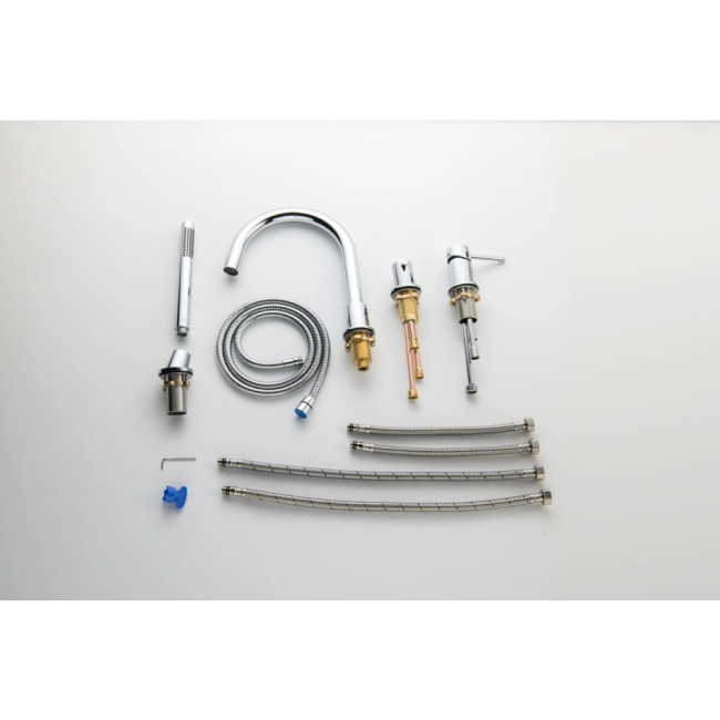 | Комплектация | 1. Смеситель 2. Излив смесителя 3. Дивертор 4. Ручная лейка 5. Шланг для лейки 150 см 6. Гибкая подводка |